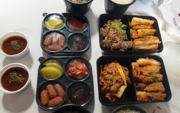 반찬으로는 단무지, 김치, 비앤나소세지, 그리고 또 무슨 김치종류였는데 꼬들빼기였던것 같아요. 확실하진 않네요. 돈까스 소스도 적당히 달고 적당히 시고 왠지 오뚜기 제품은 아닌거같아요.