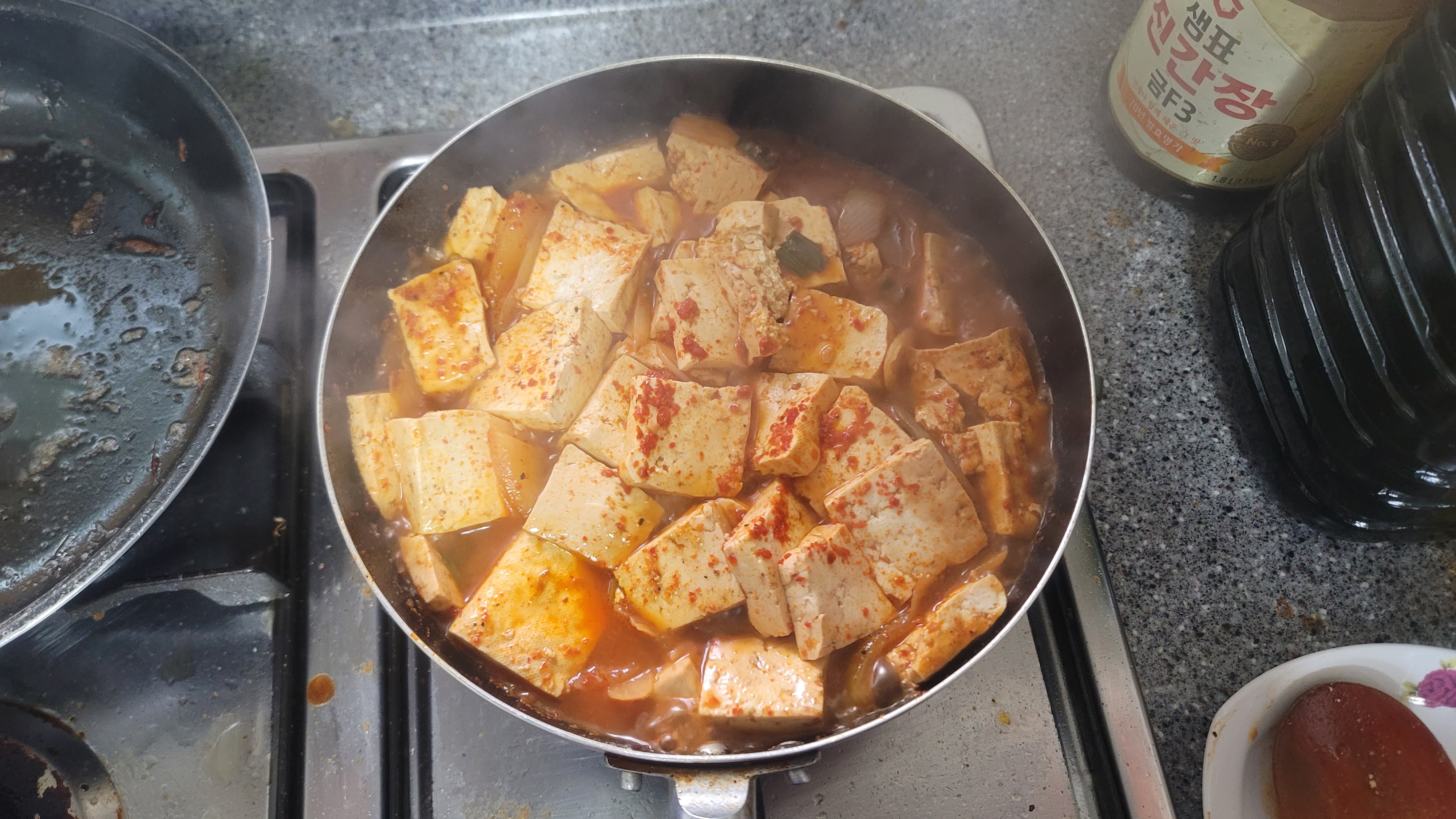 7. 두부가 잠길정도 물을 부어주고 조려주면 완성입니다.
