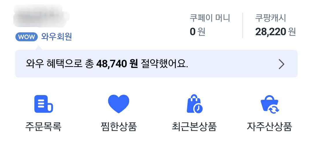 클릭 후 오른쪽 위에 보시면 쿠팡캐시 잔액을 확인할 수 있습니다. 저는 현재 28,220원 있습니다.