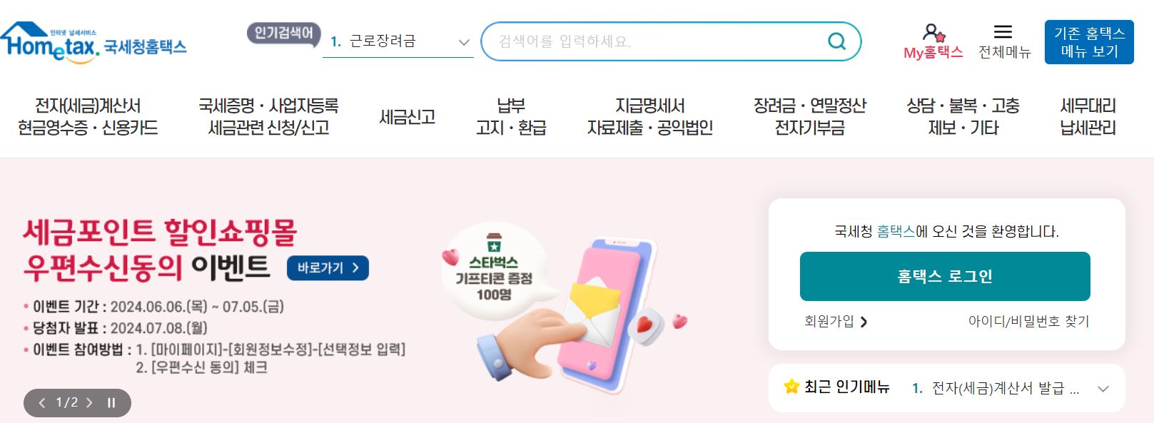 인터넷 홈택스 사이트 들어가서 로그인하기