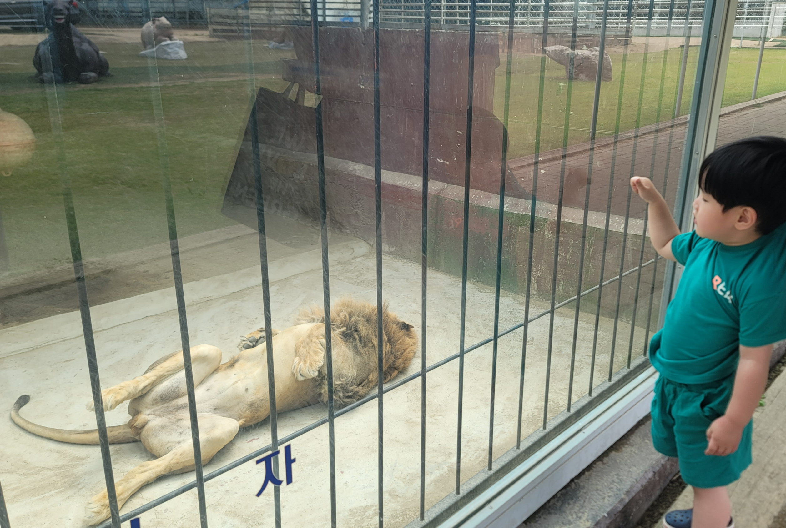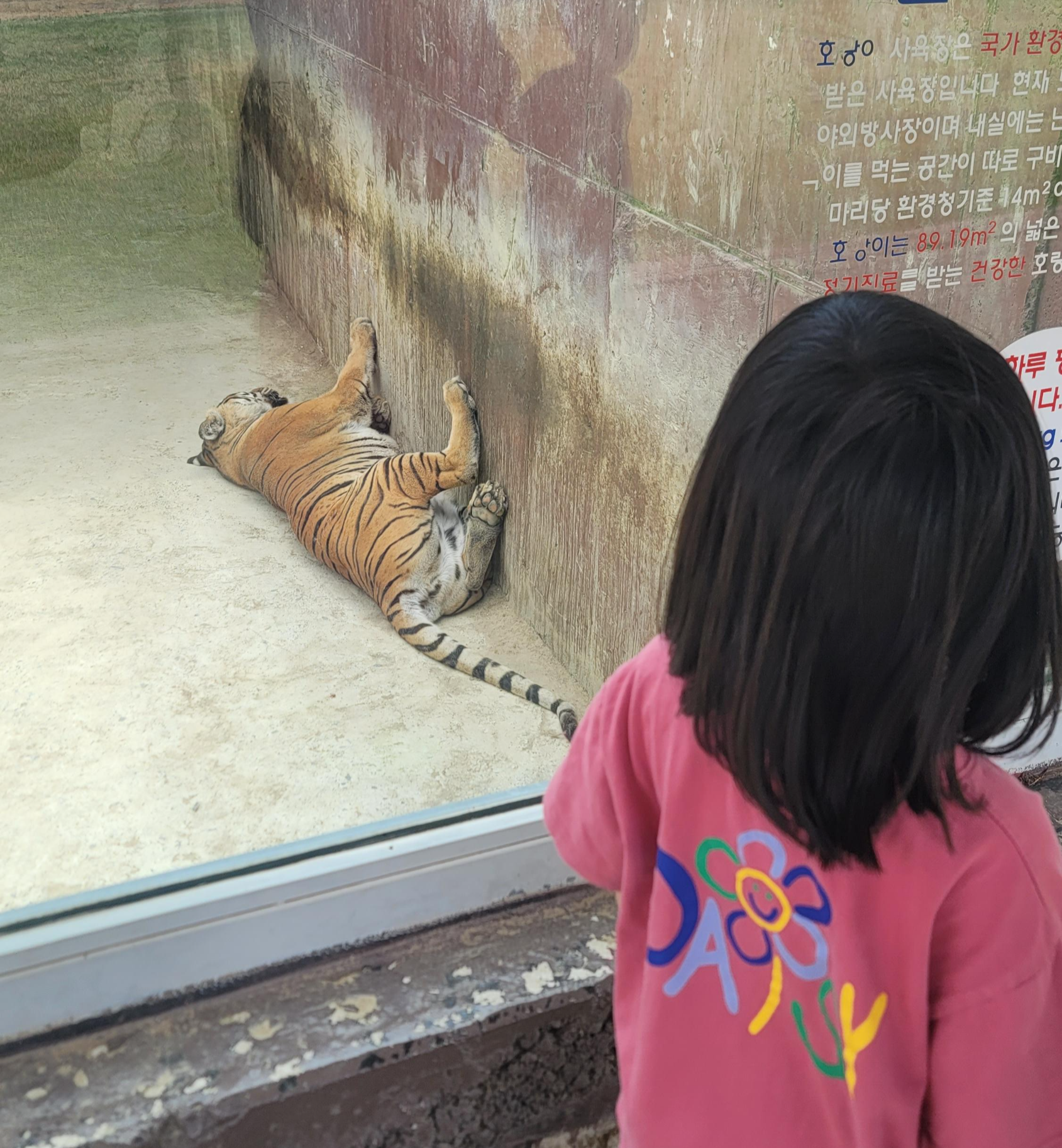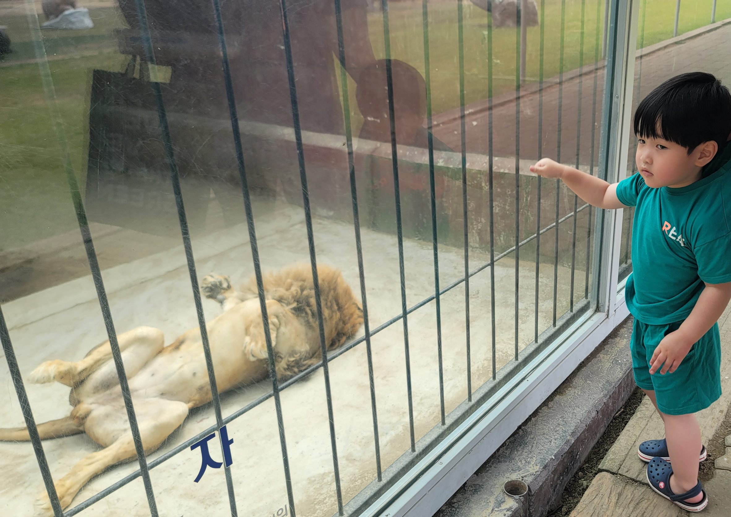 호랑이와 사자는 낮잠을 자고 있더라구요. 둘째가 소심하게 똑똑똑 노크도 해보았습니다.