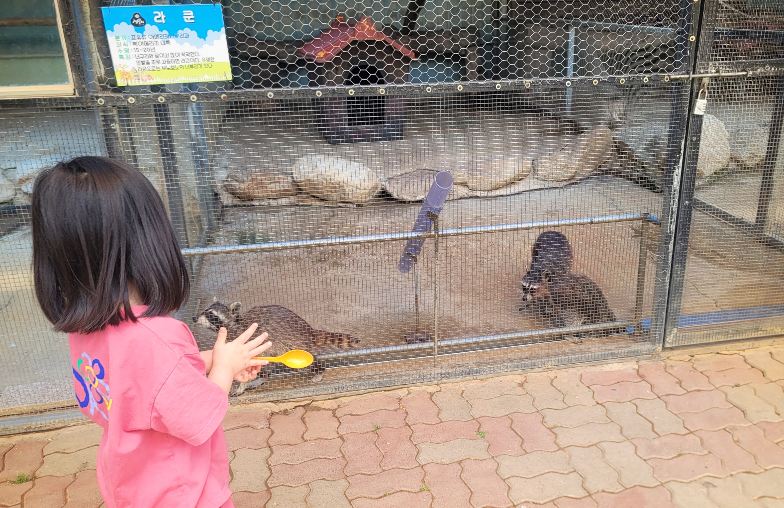 원숭이는 살짝 사나웠어요. 조금 놀랐습니다. 철창을 엄청 흔들더라구요. 귀여운 라쿤도 있어요. 공작은 저도 처음 보았는데 정말 크더라구요