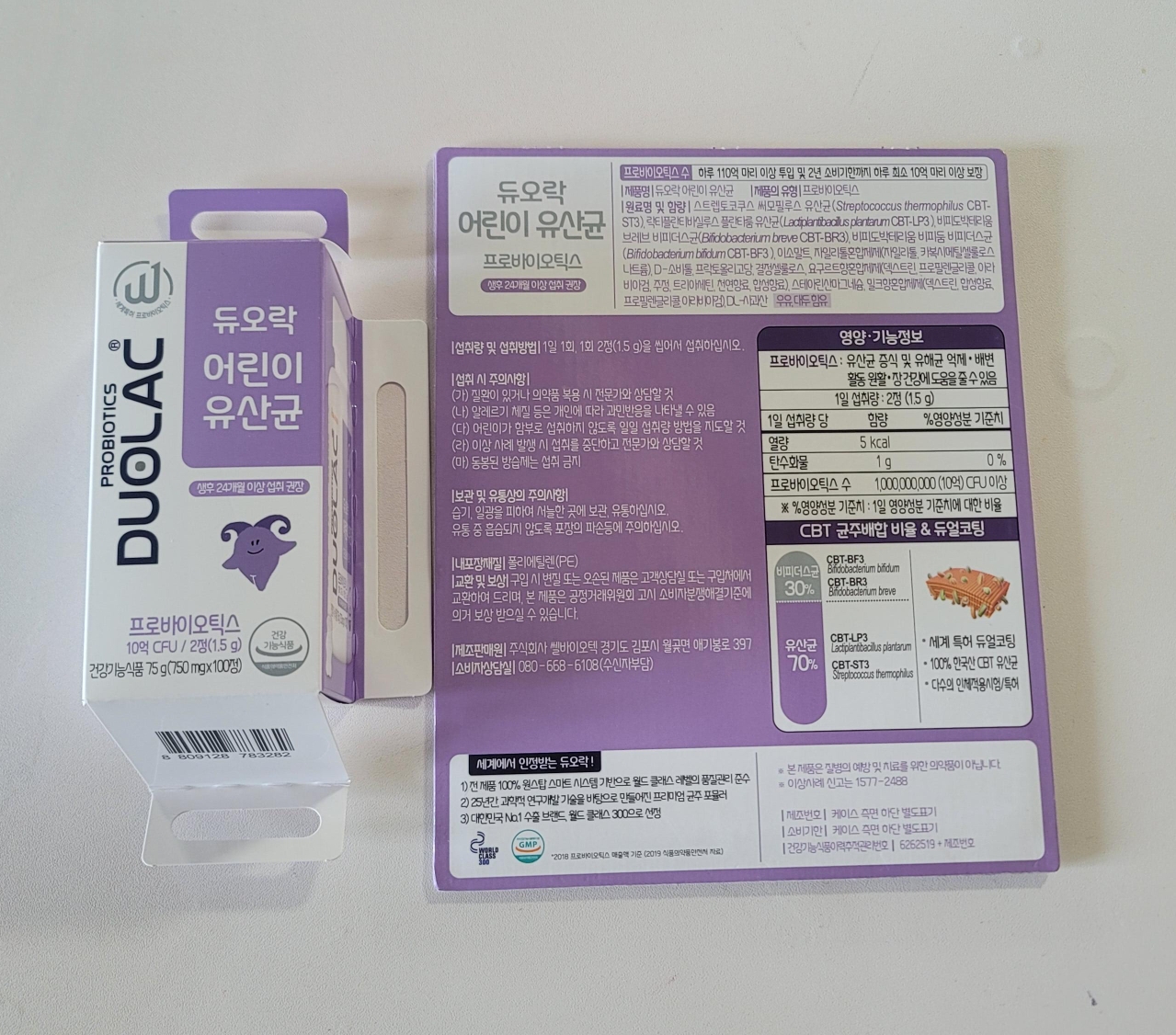 아기 변비로는 고생안하다 배변훈련으로 넘어오면서 소아 변비로 고생중이네요. 정말 다양한 종류의 유산균을 먹어보았는데 듀오락이 최고인 것 같아요.