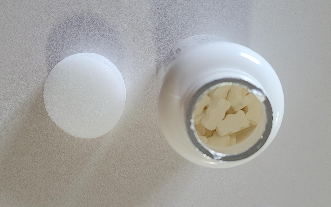 2정을 씹어서 섭취하는거에요. 병원이나 약국에서 뽀로로사탕같은 어린이사탕 아이들이 잘 먹죠? 딱 그런 재질이라 정말 좋아요. 맛도 요구르트 맛이라서 제가 먹어도 맛있더라고요