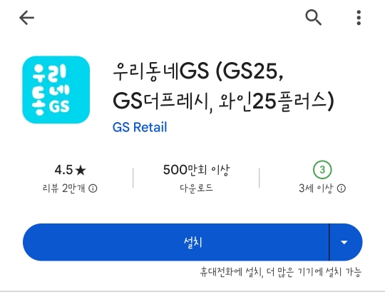 미리 픽업주문했던 어플은 우리동네GS 어플입니다. 플레이 스토어에서 설치했어요.