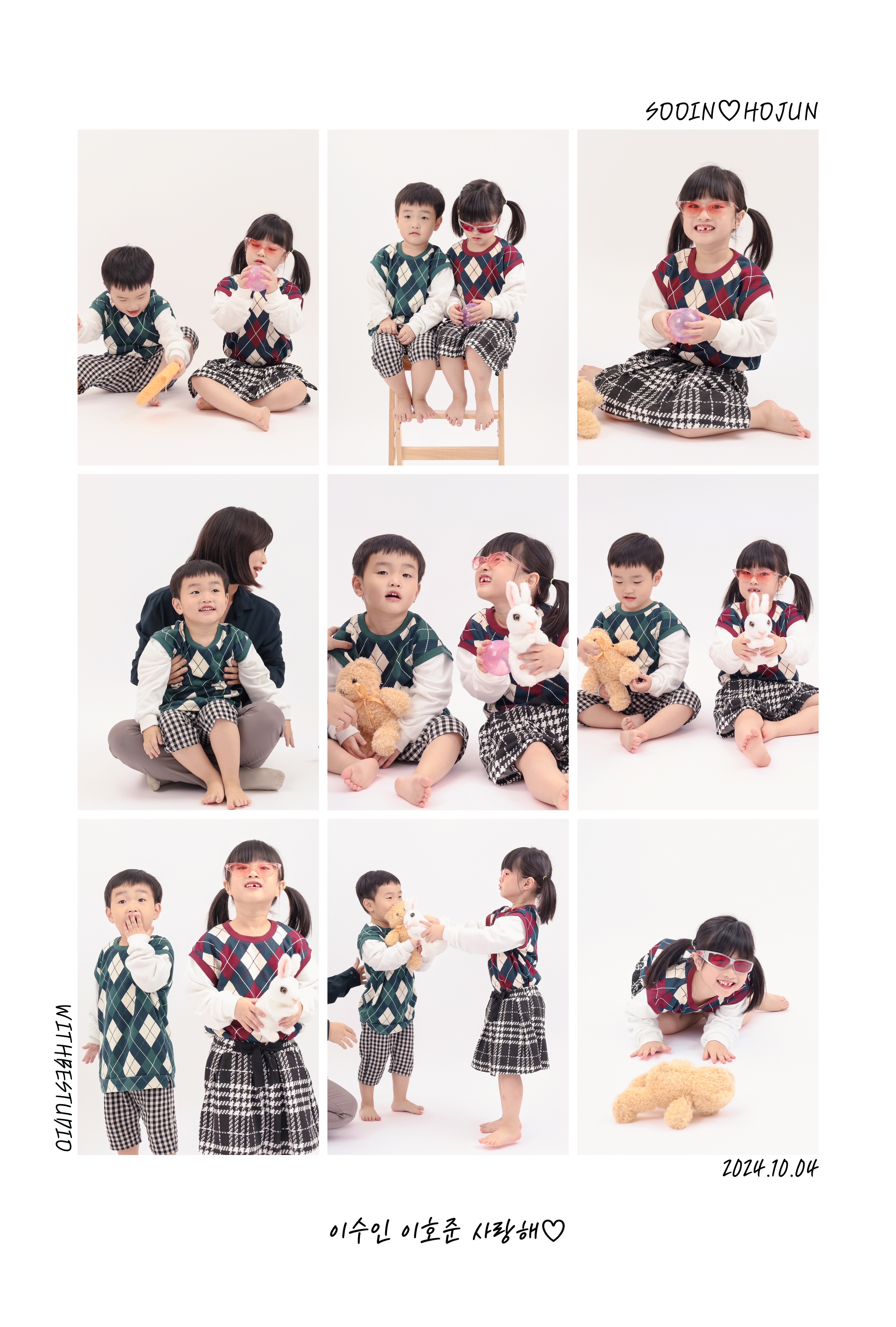 9컷으로 아이들 사진을 묶어서도 만들어주세요! 가운데 사진보시면 원래는 둘째 어깨에 제 손이 올라가있었답니다😝