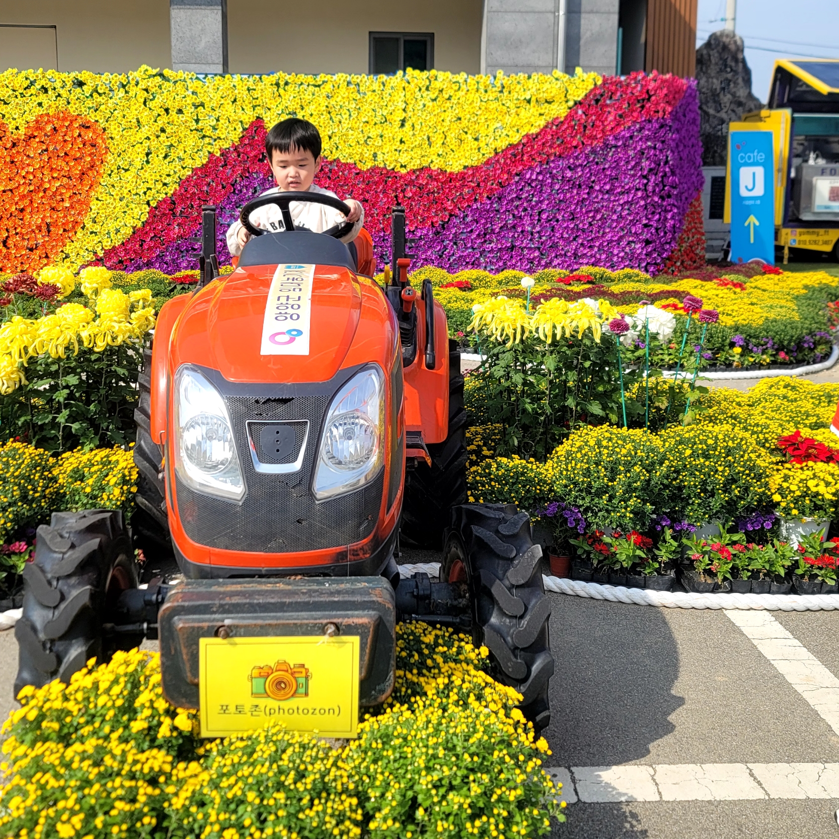 포토존에서 아이들 사진도 찍어주었어요 트랙터랑 포크레인이 있어요ㅎㅎ
