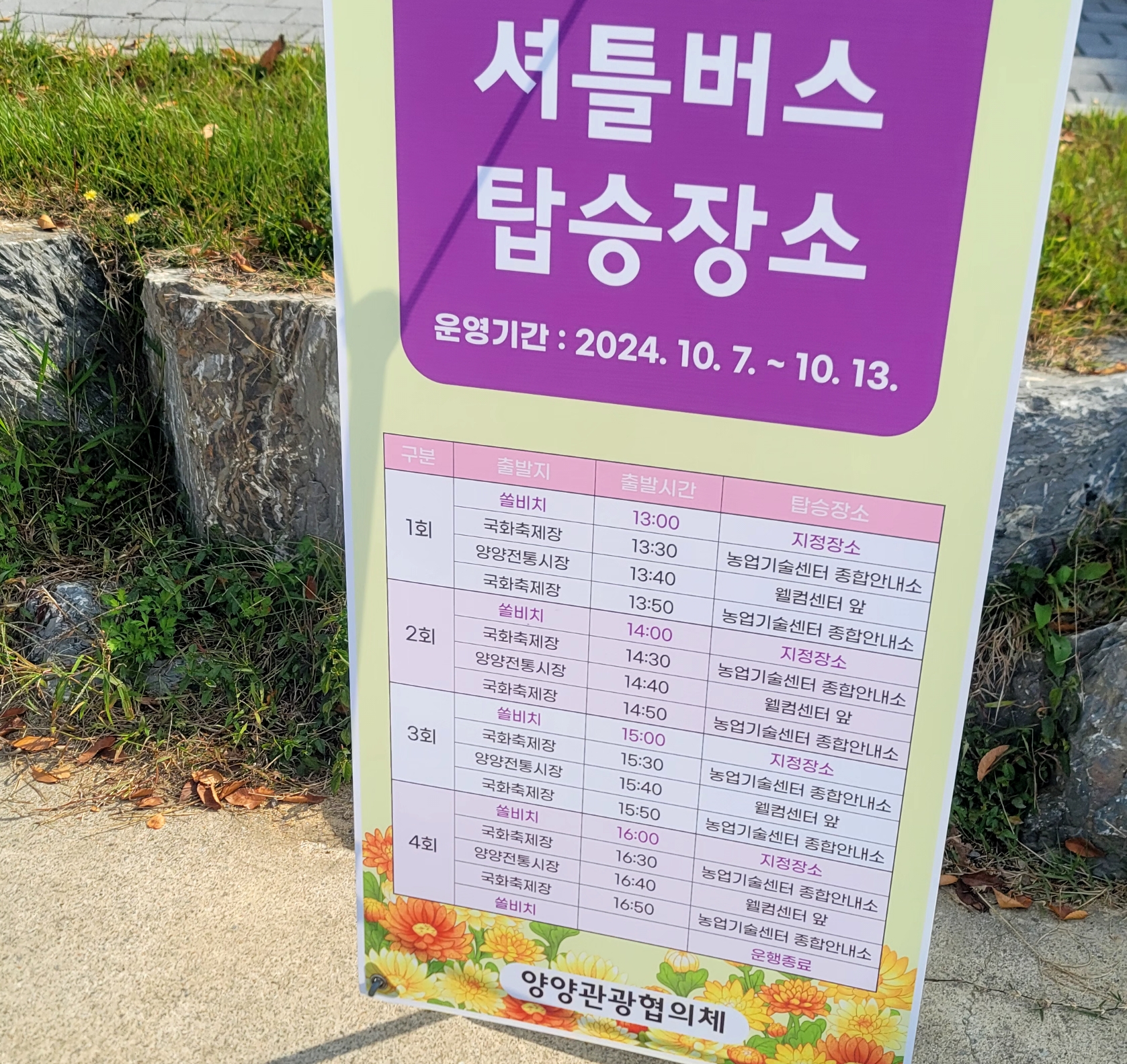 양양 국화축제 셔틀버스도 운영하더라구요 혹시 필요하시다면 참고하세요