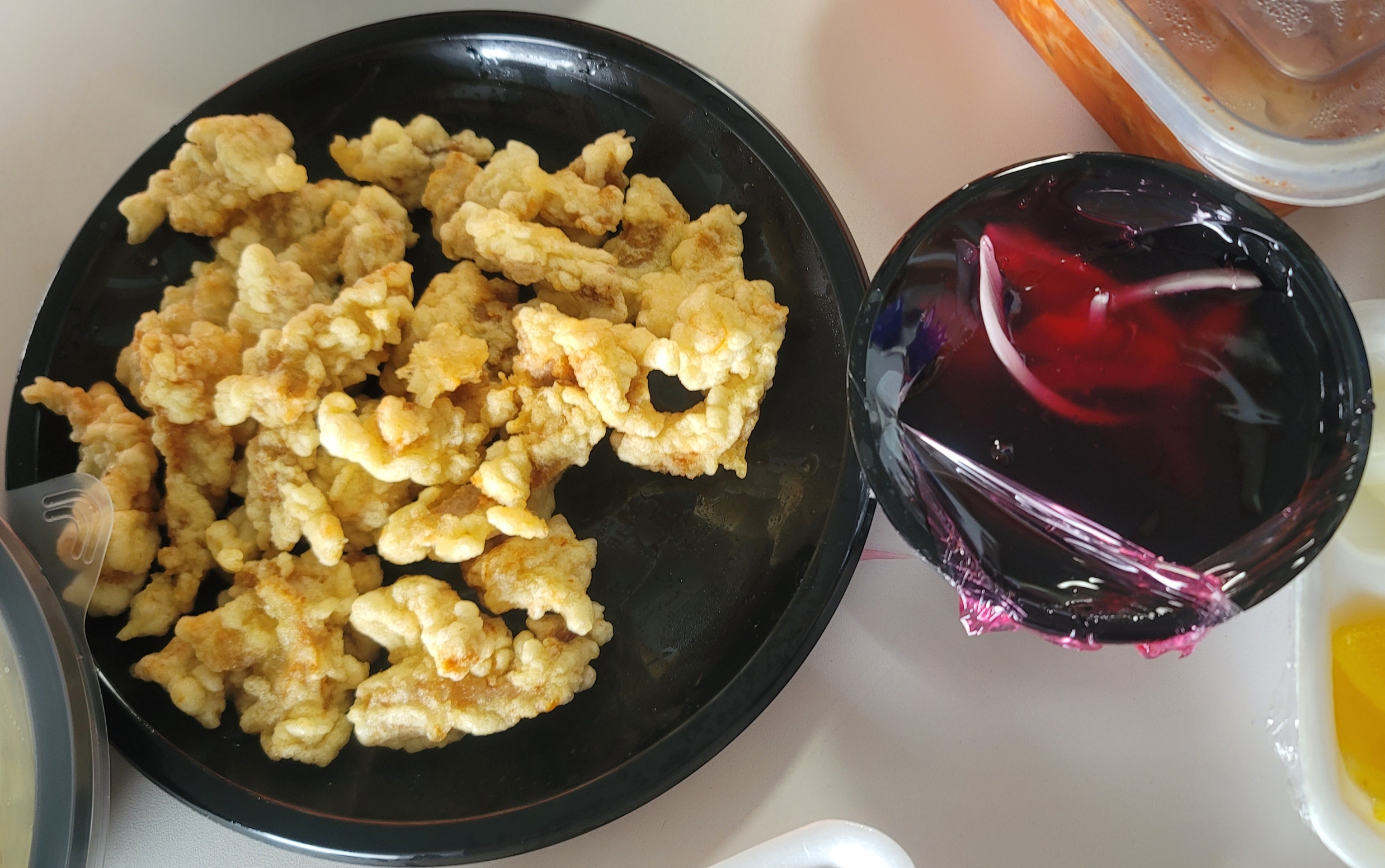 탕수육과 탕수육 소스에요 여기는 특이하게 탕수육 소스가 보라색이에요