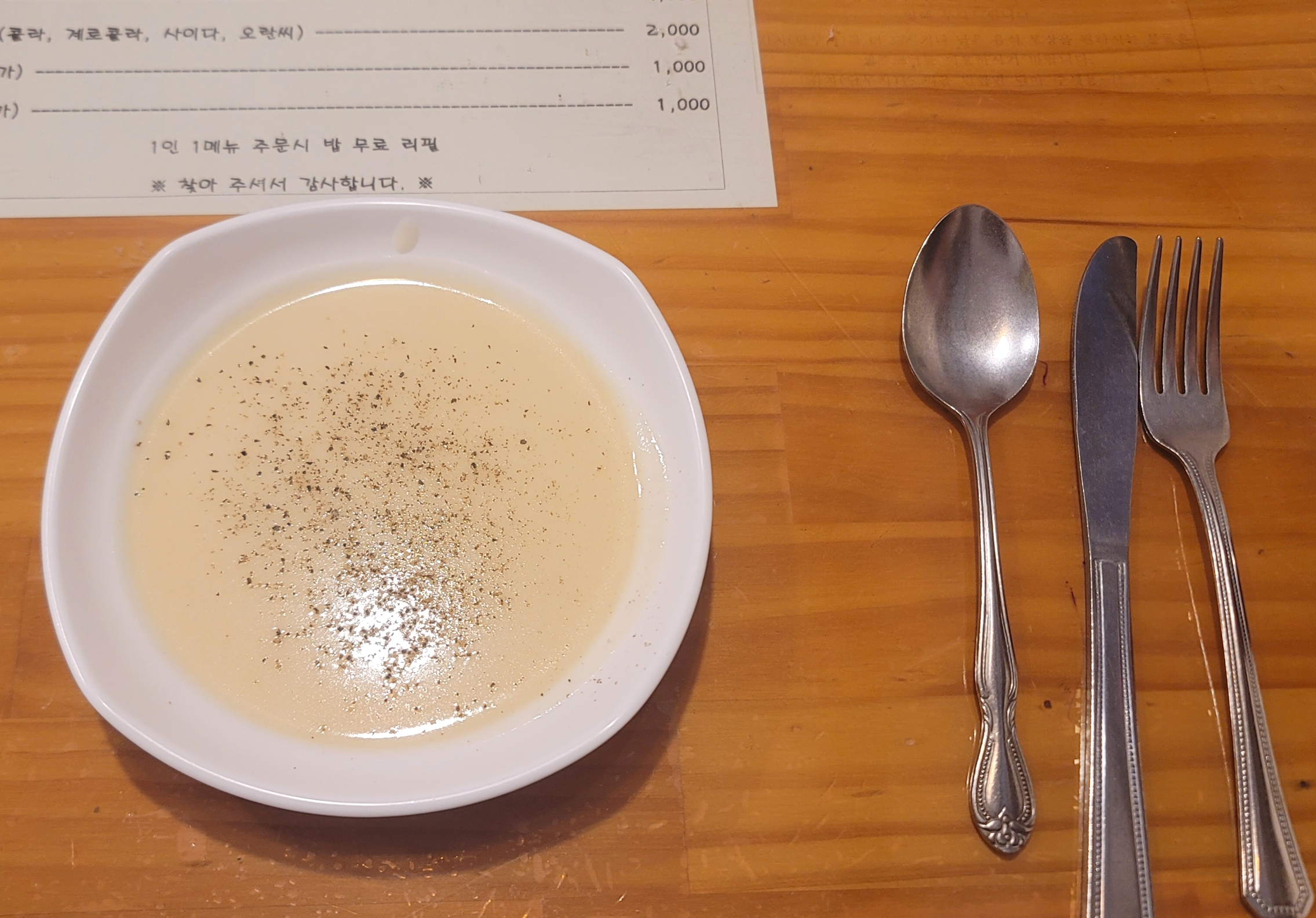 돈까스를 주문하면 스프가 나와요